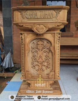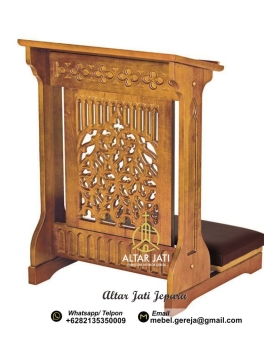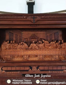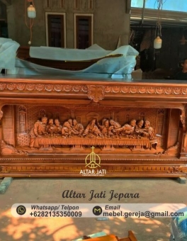 Selamat datang di Toko kami Altar Jati Jepara. Kami merupakan Spesialis perlengkapan Furniture Interior Gereja, sekaligus produsen Furniture Rohani untuk perlengkapan Gereja yang ada di kota Jepara. Kami membuat produk-produk mebel perlengkapan gereja dan perlengkapan ibadah dari kayu jati tpk perhutani ataupun jati kampung menyesuaikan dengan pemesanan anda. Kami juga bergerak di bidang pembuatan mebel ukiran Patung dan Relief Rohani, meliputi Salib Yesus Dari Kayu Jati, Relief Ukiran Jalan Salib Bahan Dari Kayu Jati, Ukiran Patung Bunda Maria Bahan Dari Kayu Jati, Ukiran Patung Keluarga Kudus Bahan Dari Kayu Jati, Berbagai Macam Model Rumah Tabernakel, Berbagai Macam Model Kursi Imam, Berbagai Macam Model Bangku Gereja, Meja Altar gereja dengan ukiran Perjamuan kudus /Terakhir dan dapat disesuaikan dengan ukiran relief lainnya.
