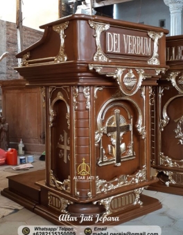 Berikut merupakan katalog dari Altar Jati Jepara untuk kebutuhan interior gereja ataupun perlengkapan ibadah di rumah anda. Kami selalu memberikan pilihan produk furniture gereja dari jepara dengan berbagai Banyak jenis dan model produk furniture jepara yang ada di website kami dari mulai meja altar gereja, salib Tuhan Yesus, bangku gereja, mimbar gereja, set kursi imam gereja, tabernakel, patung rohani dan juga produk lain untuk perlengkapan ibadah di gereja ataupun di rumah. Silahkan pilih produk mebel gereja yang sesuai dengan kebutuhan anda saat ini