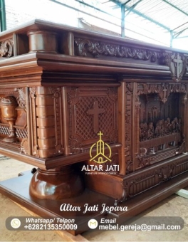Anda bisa berbelanja online produk furniture gereja di tempat kami karena kami menyediakan berbagai jenis mebel gereja disini dengan harga terjangkau dibandingkan dengan toko online mebel lain di Jepara dengan kualitas yang bagus dan terjamin. Anda juga dapat memesan furniture gereja custom yang sesuai dengan kebutuhan rumah dan selera anda di tempat kami. Segera hubungi Kontak Kami untuk informasi dan pemesanan, serta dapatkan semua produk mebel berkualitas hanya di Altar Jati Jepara