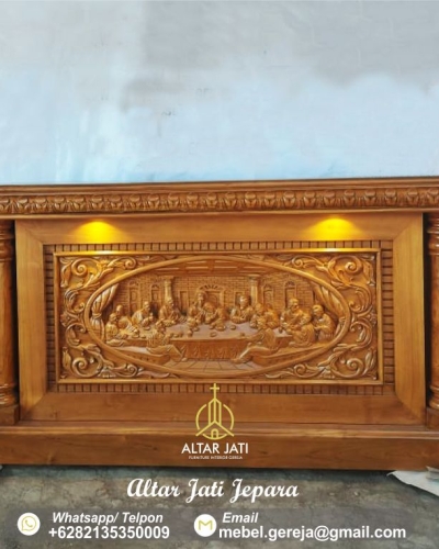 Ukuran Meja Altar Katolik Ukir Perjamuan Kudus :