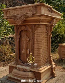 Podium Gereja Jati Ukir Minimalis