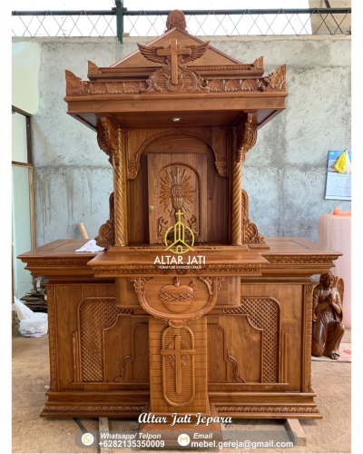 Anda bisa berbelanja online produk furniture gereja di tempat kami karena kami menyediakan berbagai jenis mebel disini dengan harga terjangkau dibandingkan dengan toko online mebel lain di Jepara dengan kualitas yang bagus dan terjamin. Anda juga dapat memesan furniture custom yang sesuai dengan kebutuhan rumah dan selera anda di tempat kami. Segera hubungi Kontak Kami untuk informasi dan pemesanan, serta dapatkan semua produk mebel berkualitas hanya di Altar Jati Jepara