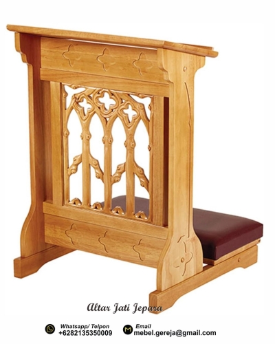 Tempat Berlutut Kristen Kayu Jati merupakan sebuah produk dalam interior gereja . Tempat berlutut ini merupakan karya tangan dari tukang asli dari kota jepara. Tempat Berlutut Kristen Kayu Jati terbuat dari bahan kayu pilihan terbaik . Sangat cocok untuk mempercantik ruangan gereja. Lengkapi interior gereja anda agar semakin menarik dan nyaman dengan berbagai model produk Mebel buatan kami.